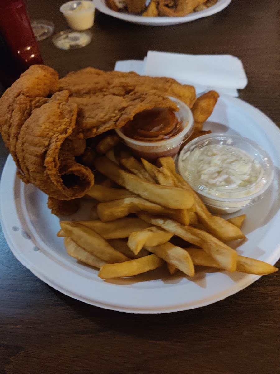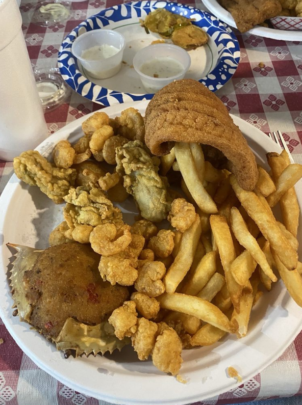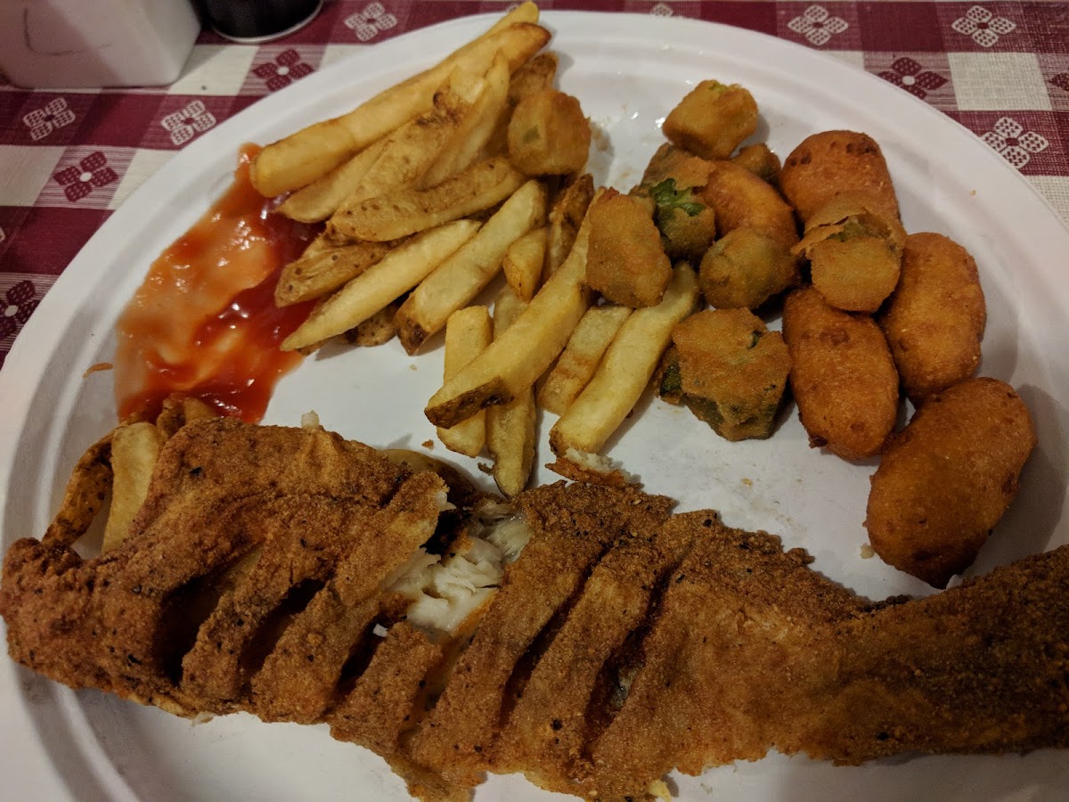 We had a carry out order...flounder and shrimp and a flounder and crab. My friend enjoyed hers and i ate some of mine. Everyone likes what they like. It just don't seem as good as it used to . They did have a large group ahead of us so I guess that's why we had to wait an hour instead of the 20-25 minutes that we were told when we called our order in. Im probably not going back any time soon. The husband puppies were cold and rubber like. The fish was thin and not very tasty. The red slaw was, well i don't know how to describe it. Sorry Lake Todd. Didn't want to thrown you under the bus.