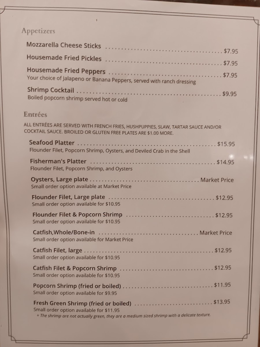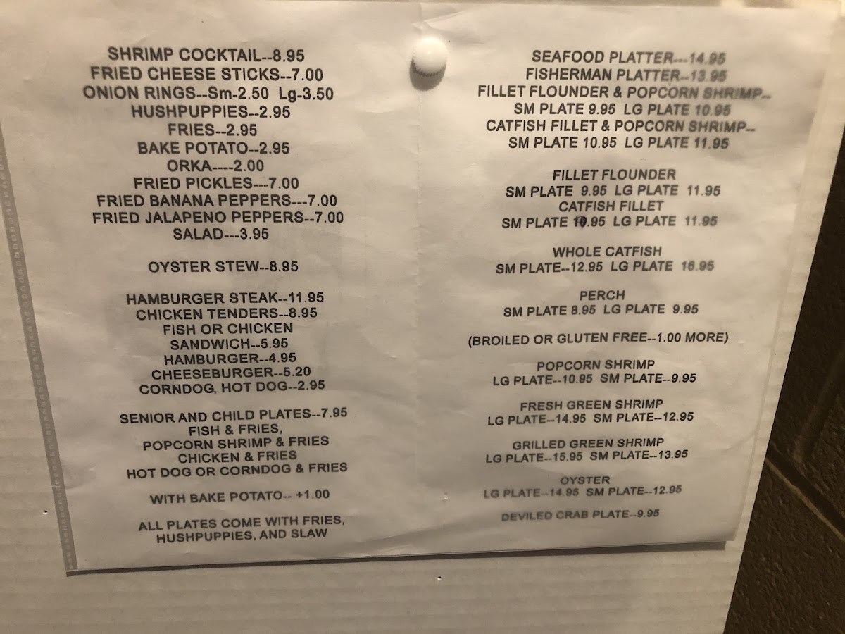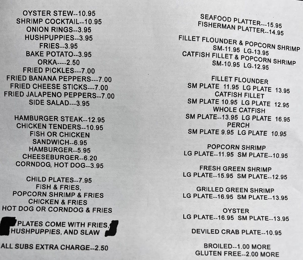 Lake Todd Fish Camp Menu